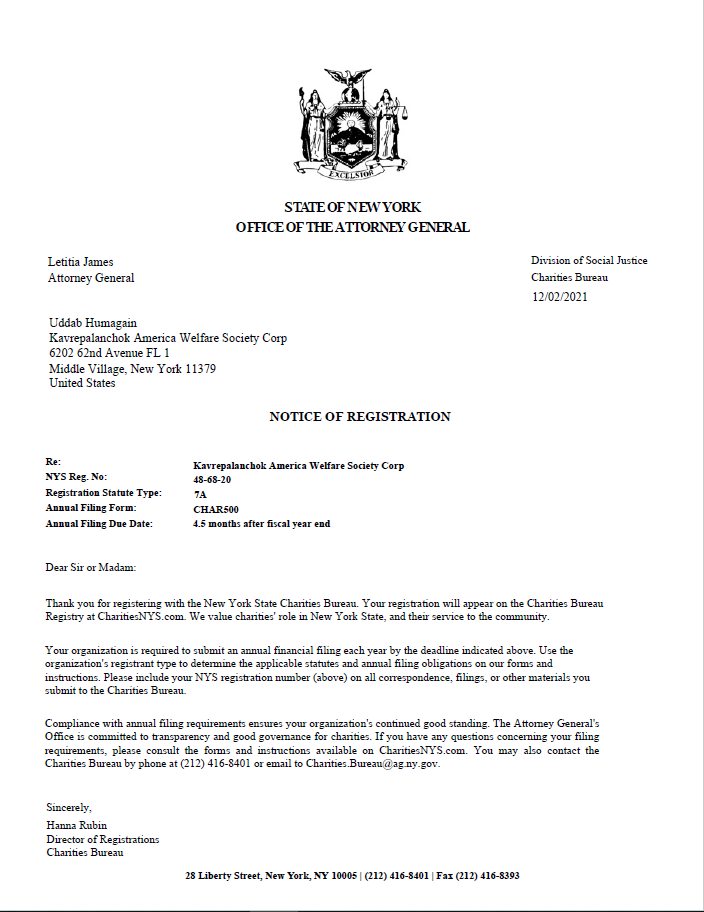 Certificates Goverment Registration CertificateState of New York Office of the Attorney General Registration Click Here Department of The Treasury Tax Exempt and Gvernment Entities Registration